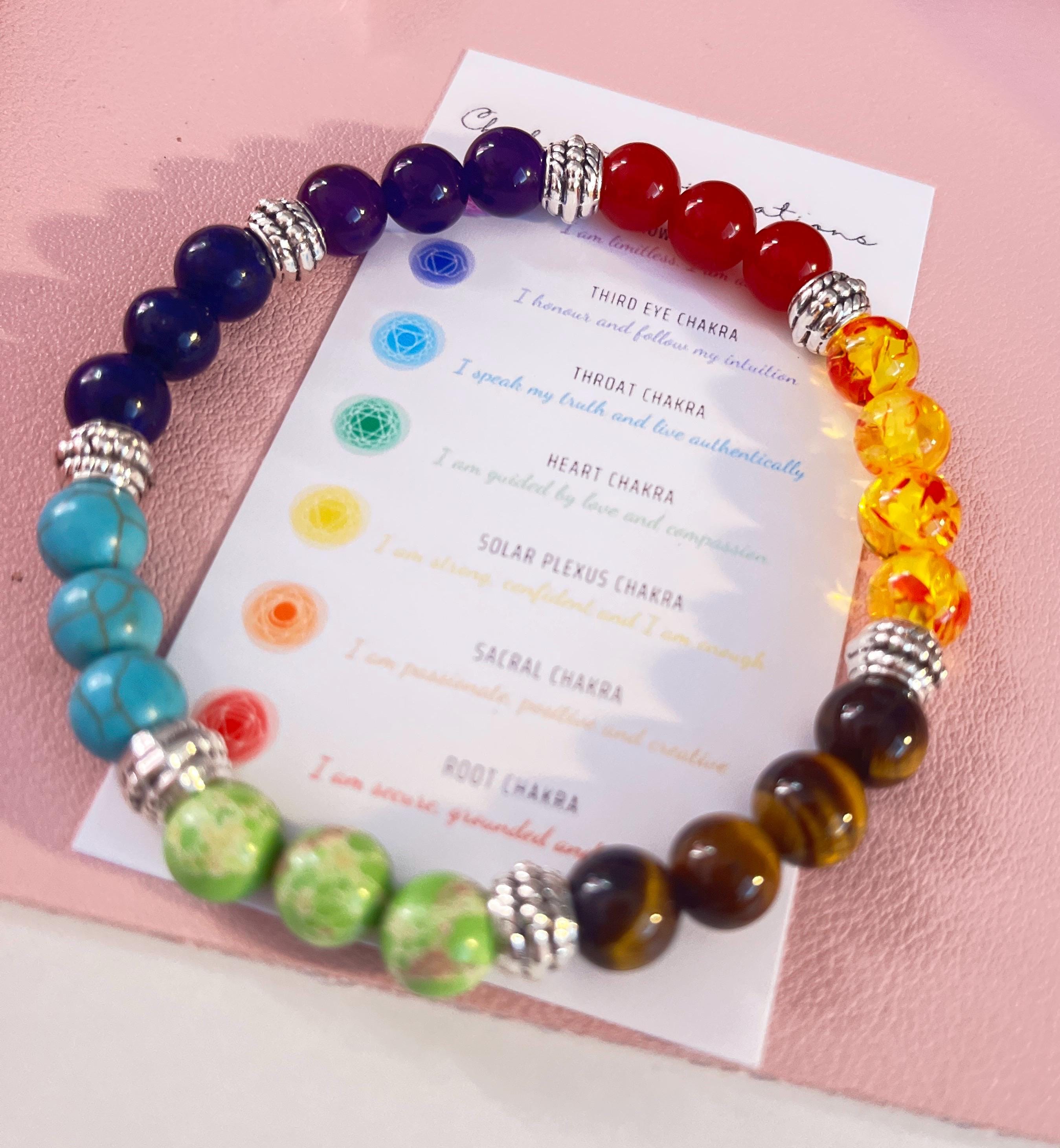 This Chakra bracelet has the seven chakras, one genuine gemstone representing each chakra. This gorgeous chakra bracelet is boho casual. The beads are a beautiful combination of colors. The design is beautiful and unique. It is made with a durable elastic stretch cord. Suitable for a man or woman