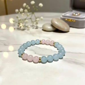 8mm stones Rose Quartz & White Jade “Self Love & Prosperity” Crysta Gemstone Bracelet