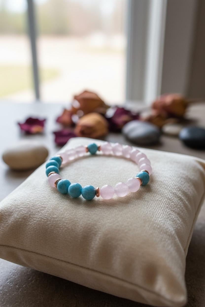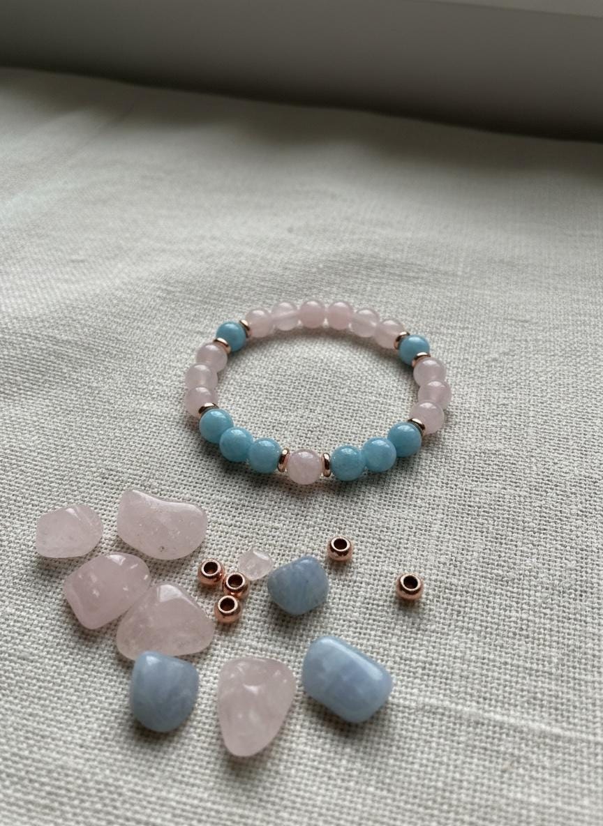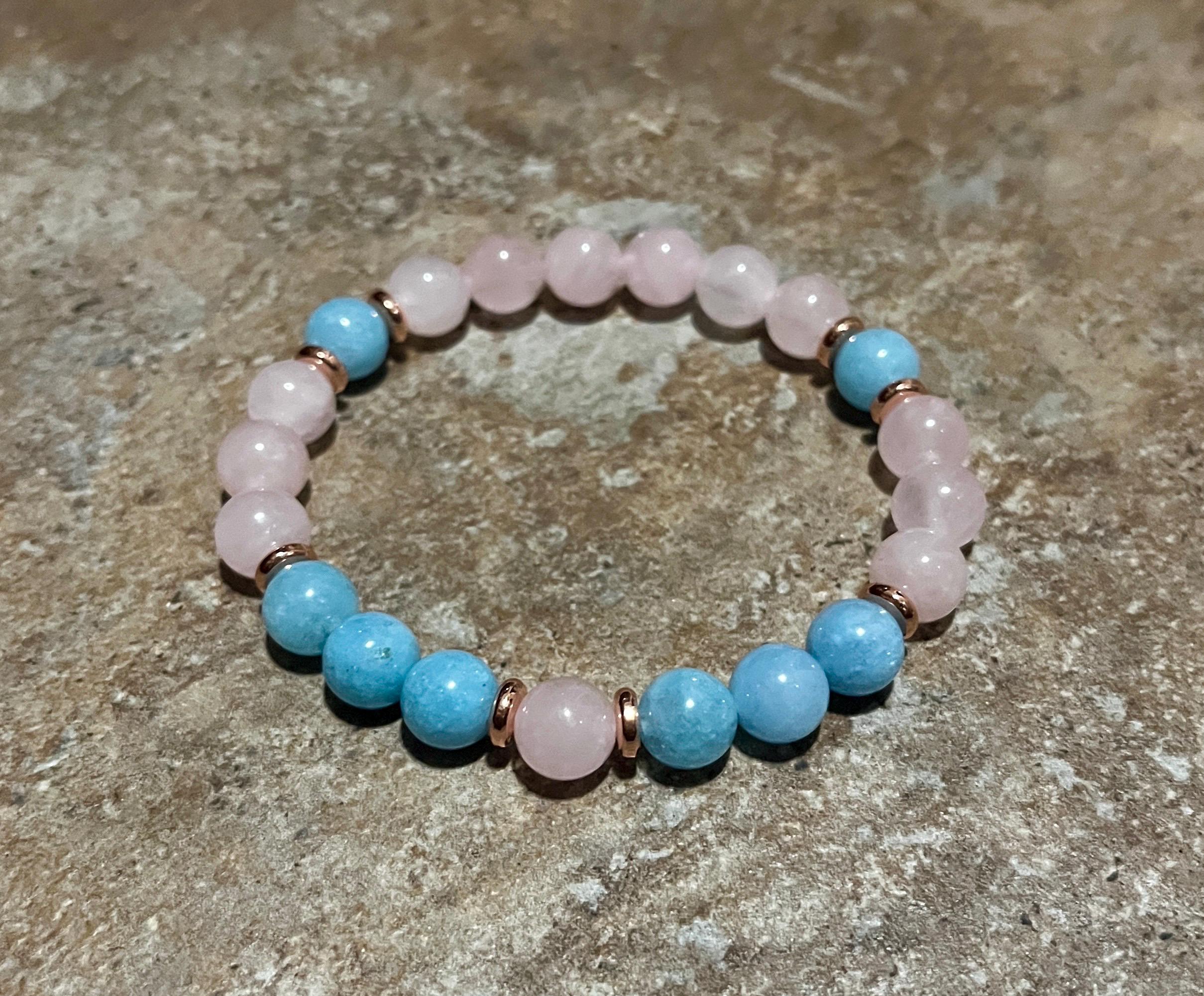 Rose Quartz Crystal & Aquamarine “ Love & Peace” Gemstone Bracelet