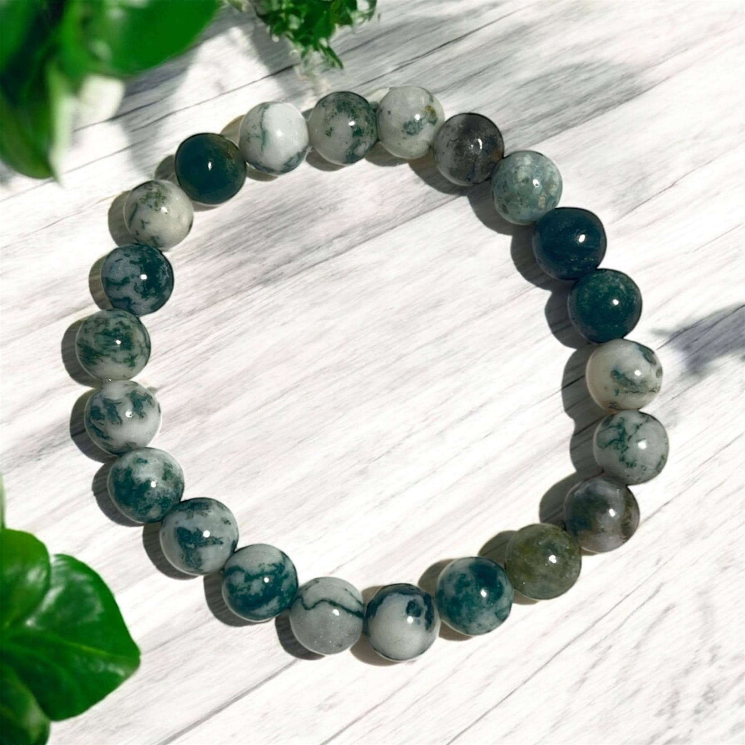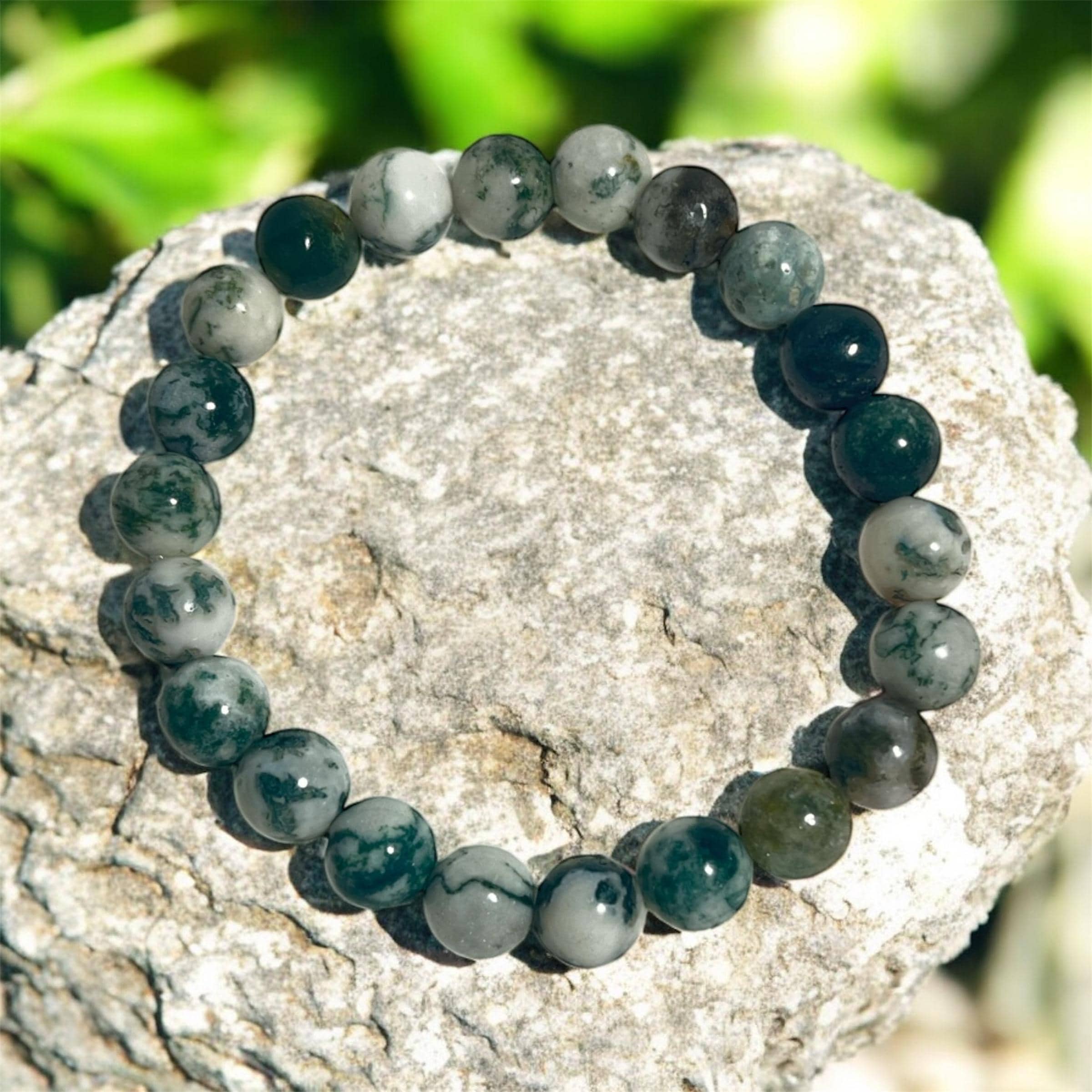 Tree agate symbolizes growth, renewal, and stability, and is believed to help connect with nature. Its tree-like patterns are linked to the Earth's life force and its properties are thought to promote personal development, inner peace, abundance, and emotional healing.