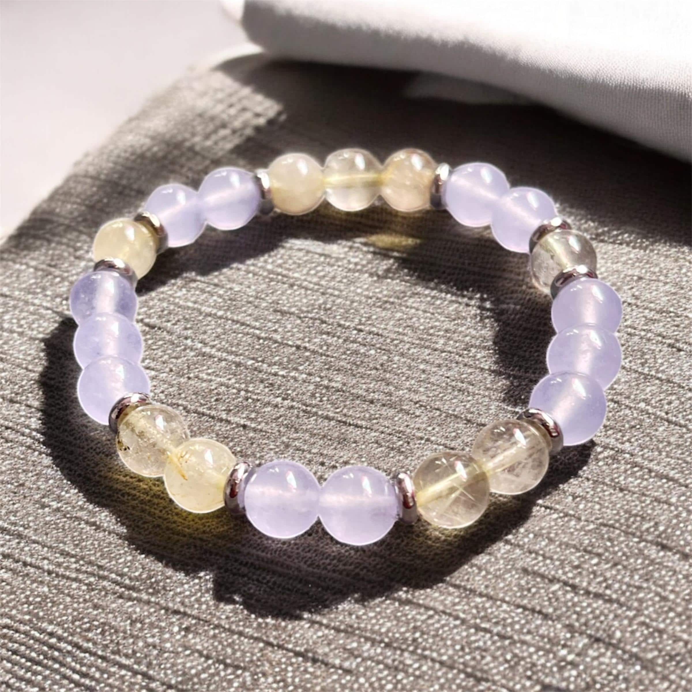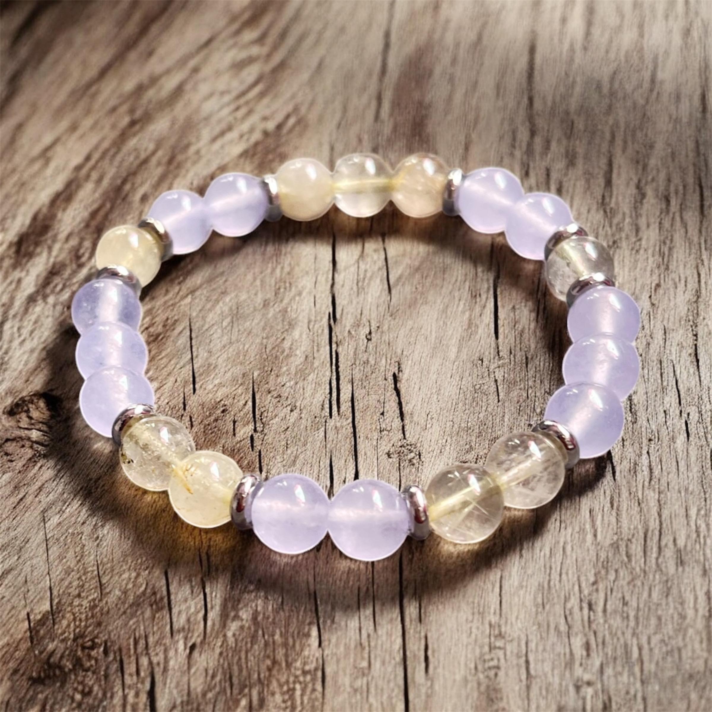 Bring harmony, focus, and radiant energy into your daily life with this handcrafted Lavender Quartz and Yellow Rutilated Quartz “Clarity” Bracelet.
