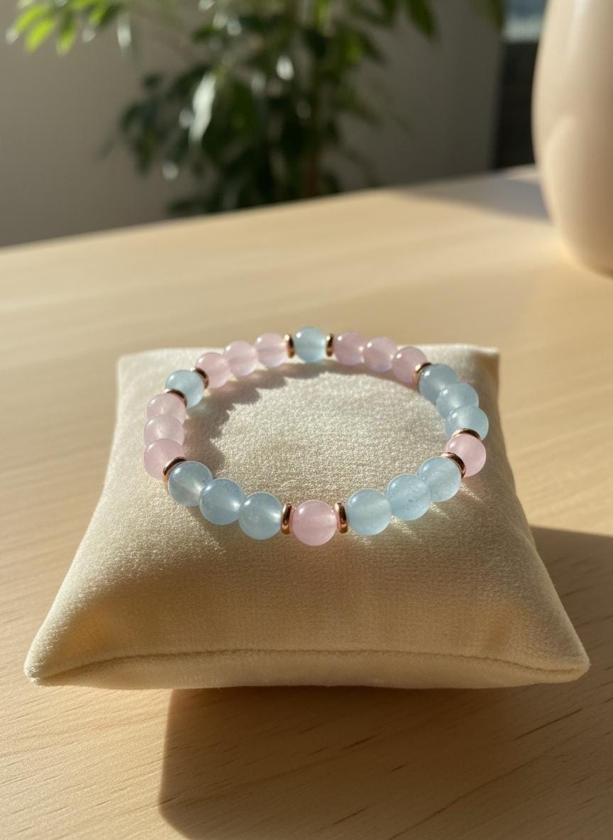 Bring softness, peace, and emotional clarity into your day with this beautiful Pink and Blue Chalcedony gemstone bracelet. Handcrafted with intention, this bracelet blends two calming stones known for their gentle, nurturing energy.