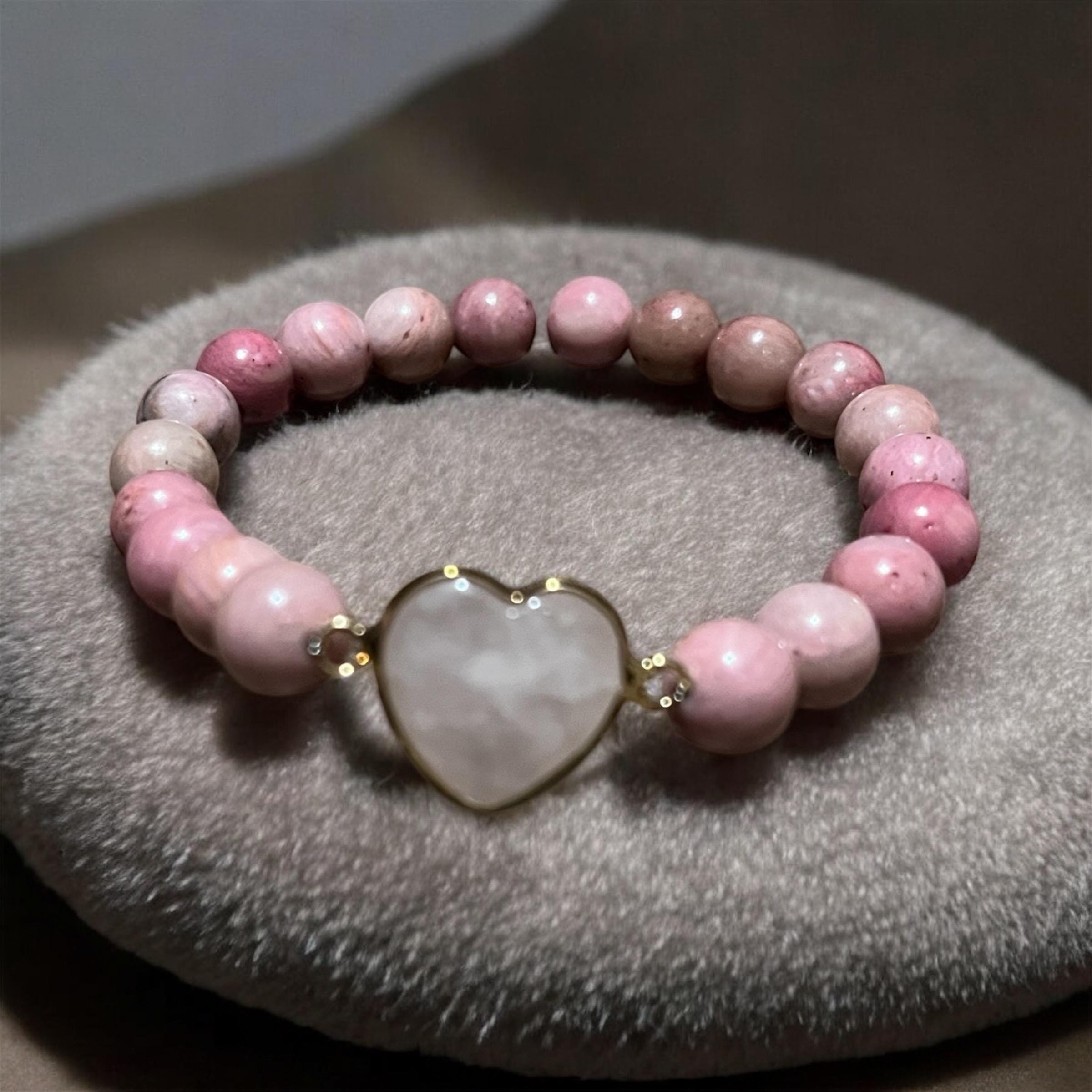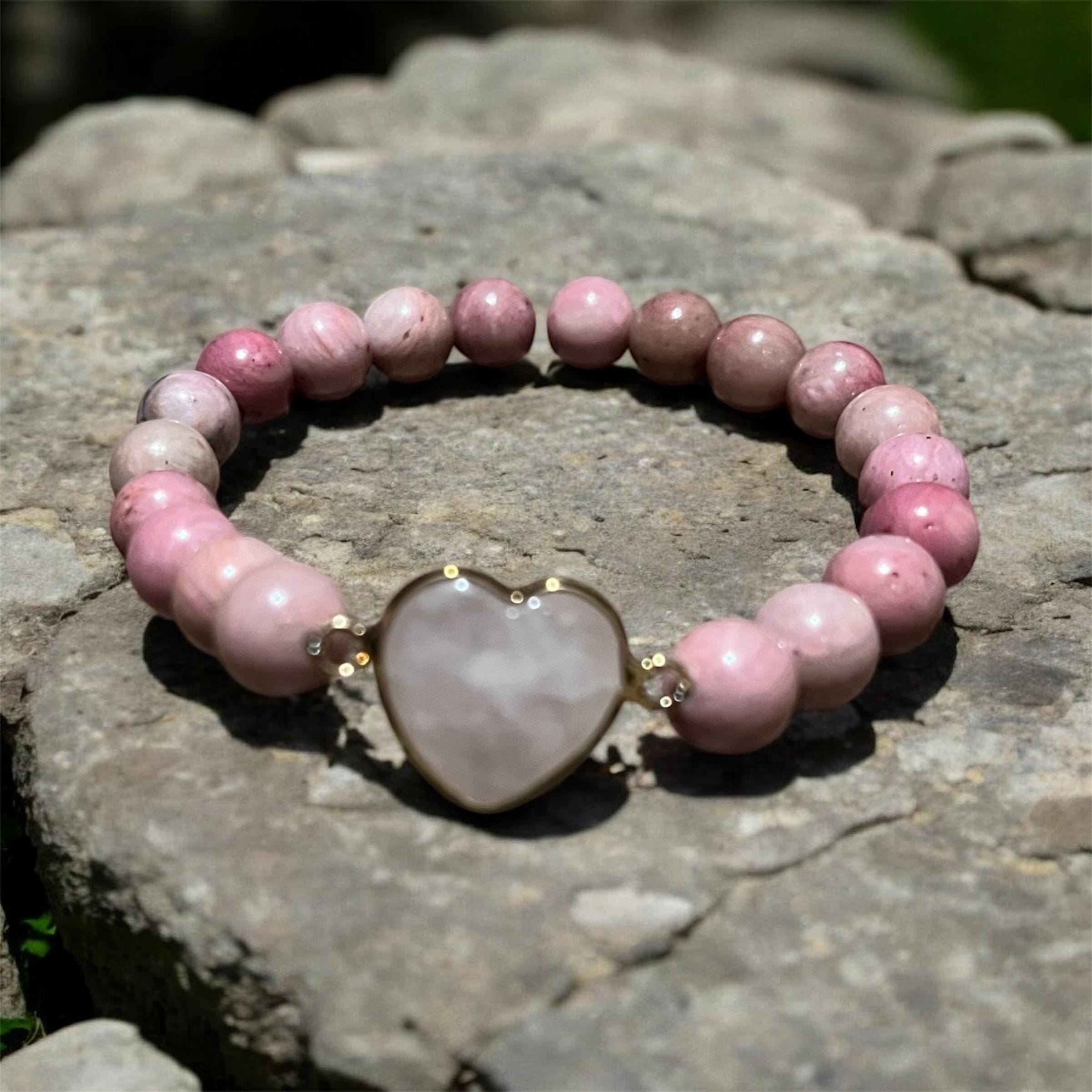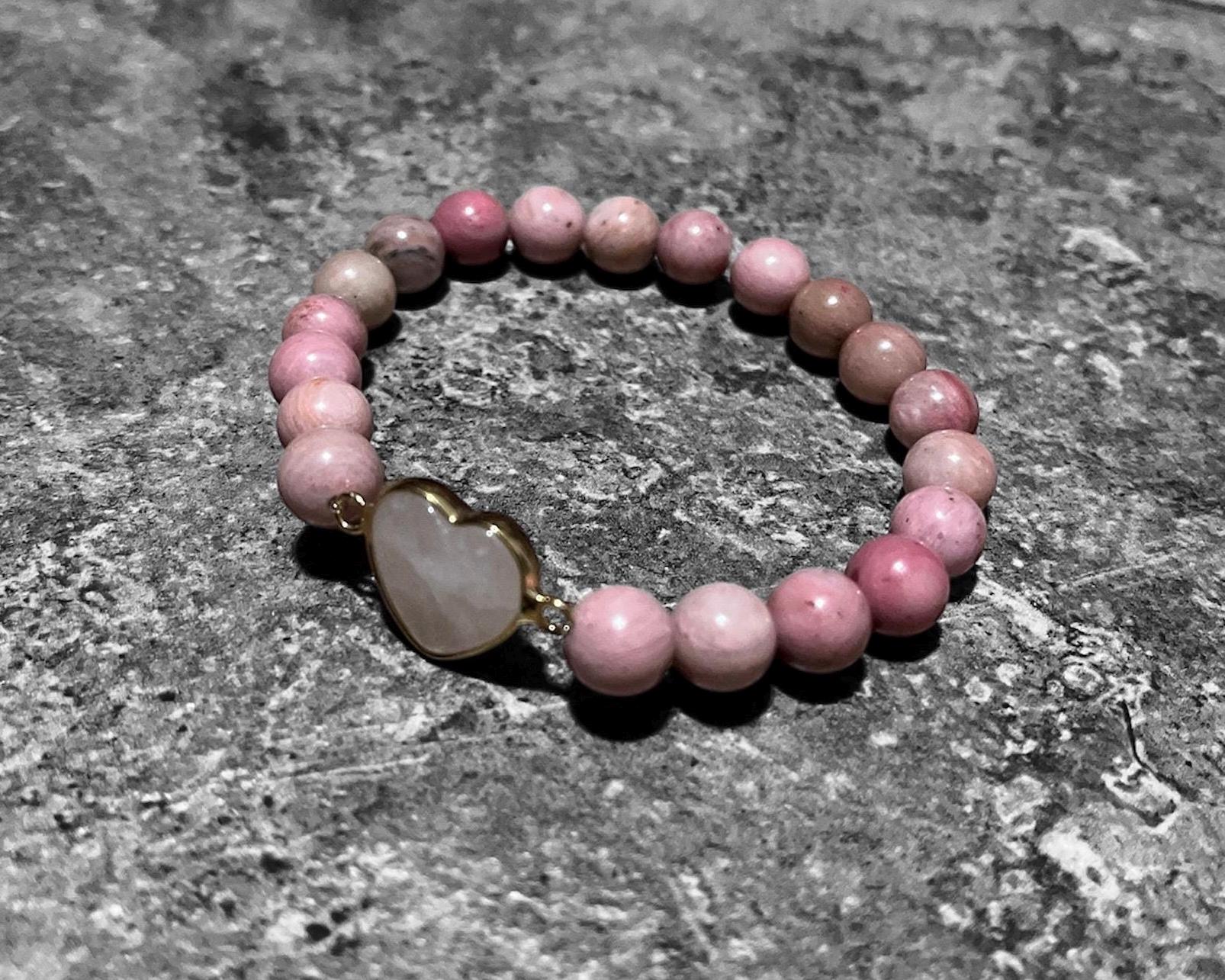 Rhodonite bracelet with a Rose Quartz heart charm is thoughtfully handcrafted to promote love, emotional healing, and inner peace. Rhodonite is known as a stone of compassion, helping to heal emotional wounds and encourage forgiveness.