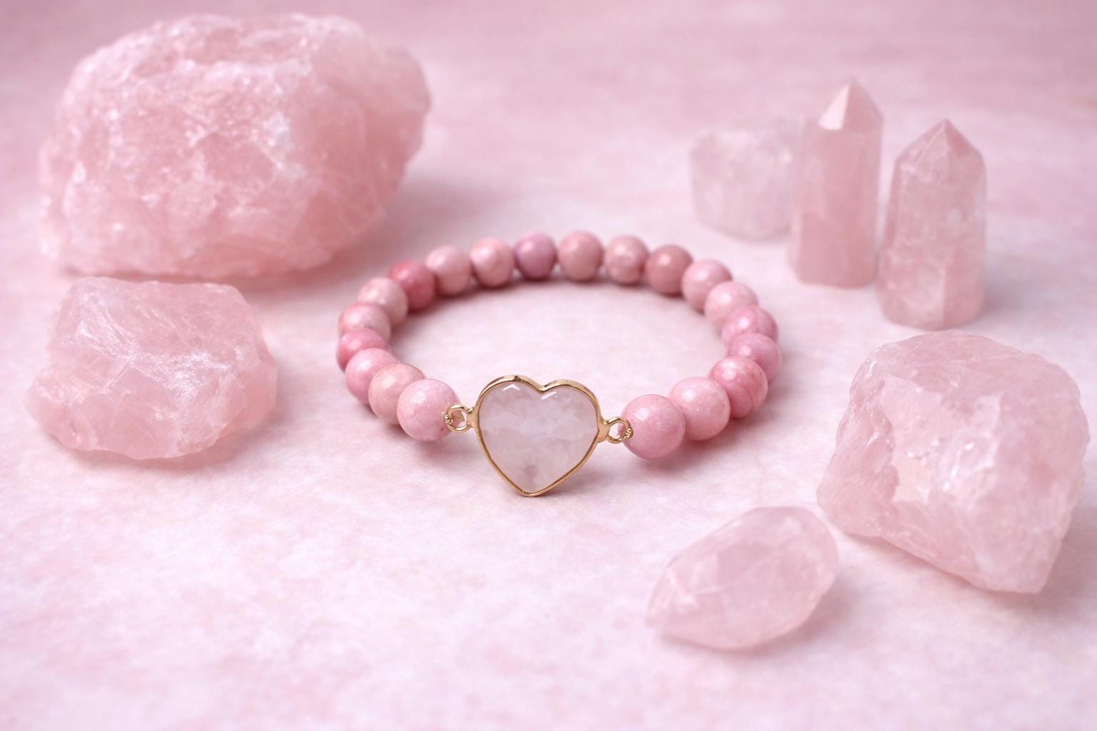 Rose Quartz—the stone of unconditional love opens the heart to self-love, harmony, and gentle healing.