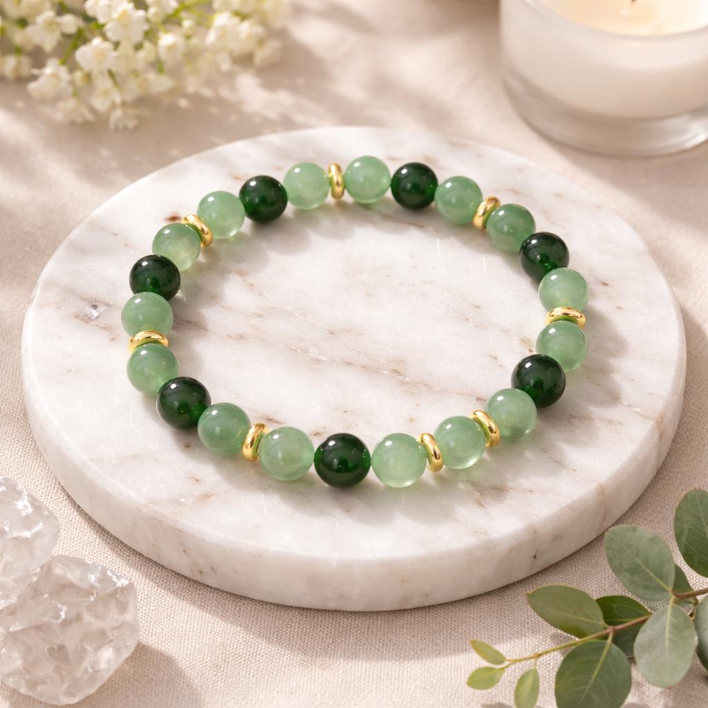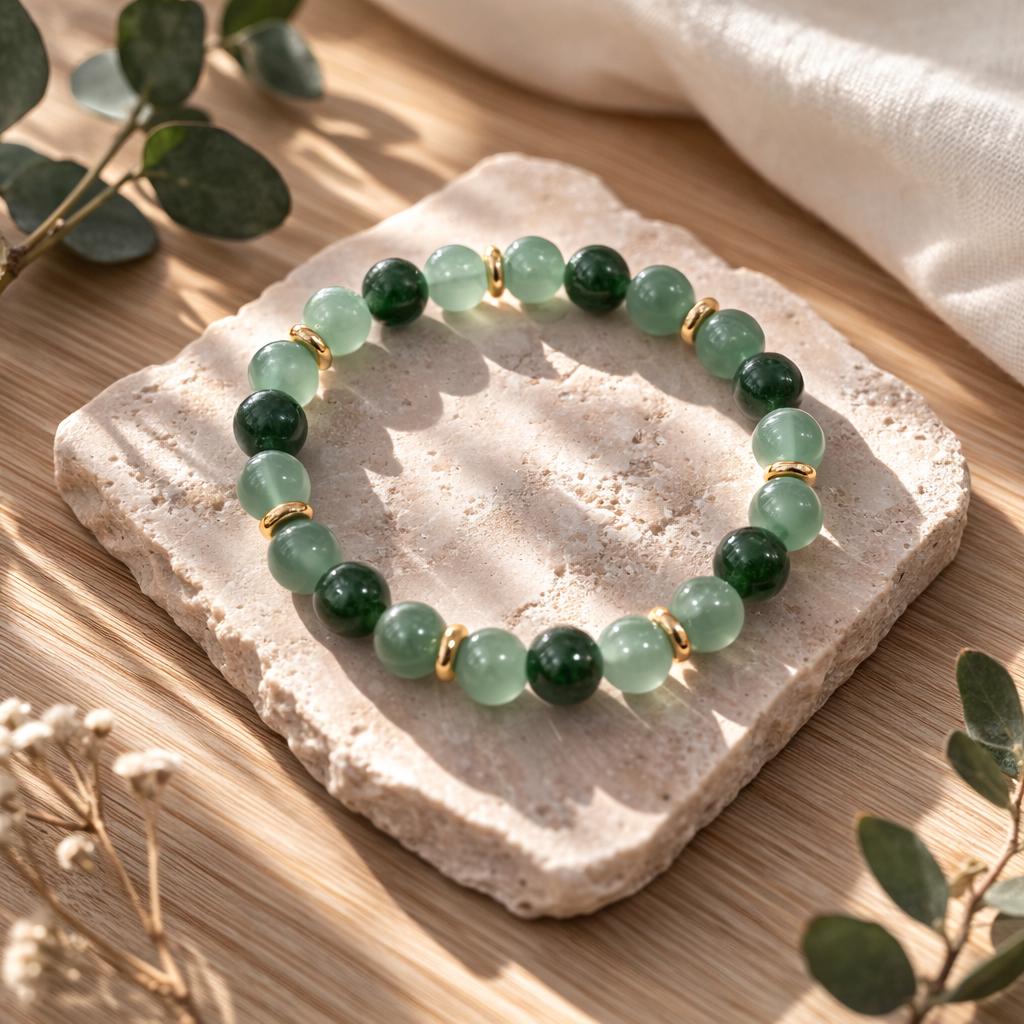 ✨ Details: • 8mm genuine Green Aventurine & Green Chalcedony beads • Gold accent spacers • Stretch cord for comfortable fit • Handmade with intention and care • Unisex design
