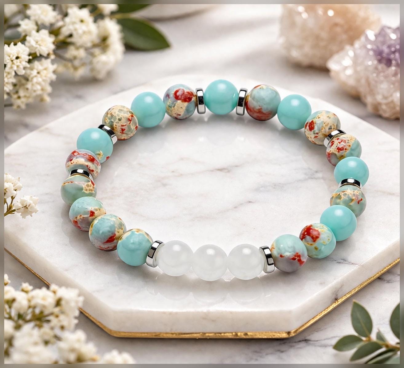 ✨ Details: • Genuine Aqua Terra Jasper & White Jade 8mm gemstones • Handmade with care and intention • Meaningful gift for birthdays, holidays, or self-care